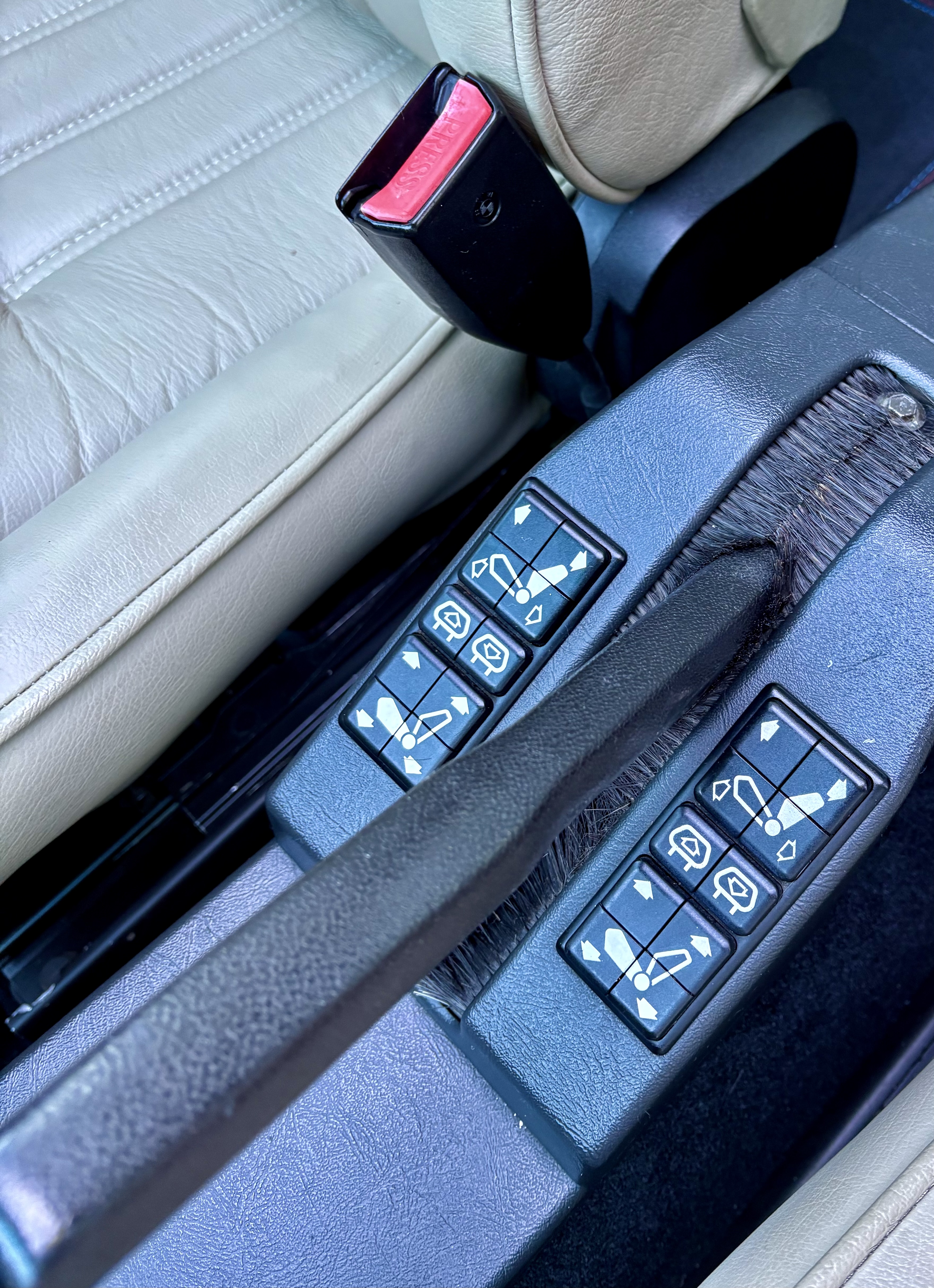 The brake system was upgraded to a full E34, including its dual-diaphragm booster, dual-piston master cylinder, 302/300mm front/rear rotors and 60/38mm front/rear calipers. The original BBS wheels were sent back to BBS in Braselton, Georgia for restoration. These are authentic 17 inch BBS and are signed inside the rims by the restorer at BBS. New Michelin Pilot Sport All Season tyres were added which now have only 50 miles on them. I also have identical polished aluminum BBS wheels with Michelain rubber on them with less than 2000 miles on them. This second set will be included in the sale.